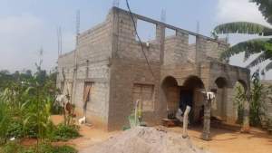 an unfinished duplex built on 100m2 and with as bonus a bare plot of 300m2 all for a total area of 400m2 titled (located in the city of Yaoundé, in the Monti district) with the following characteristics: